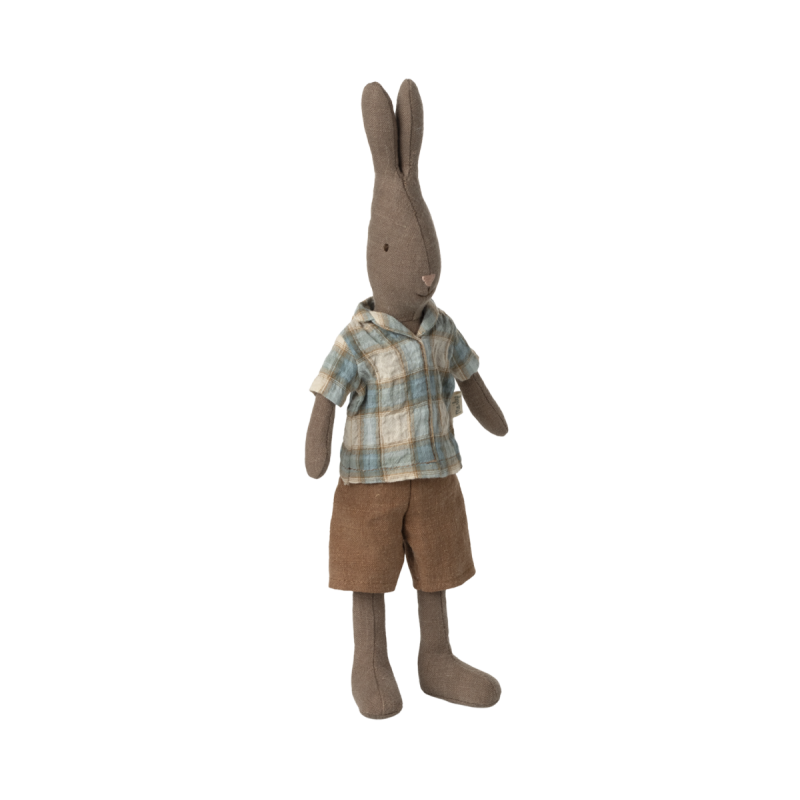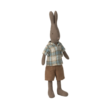 Un conejo clásico fabricado con suaves tejidos naturales que proporcionan un tacto y un aspecto encantador. El conejo talla 2 cabe en la Casa de Miniatura y en todos los muebles tamaño mini y miniatura. Echa un vistazo a la colección de ropa.