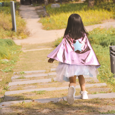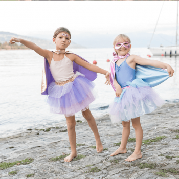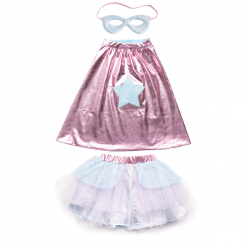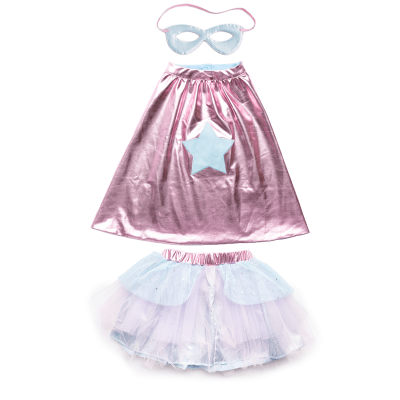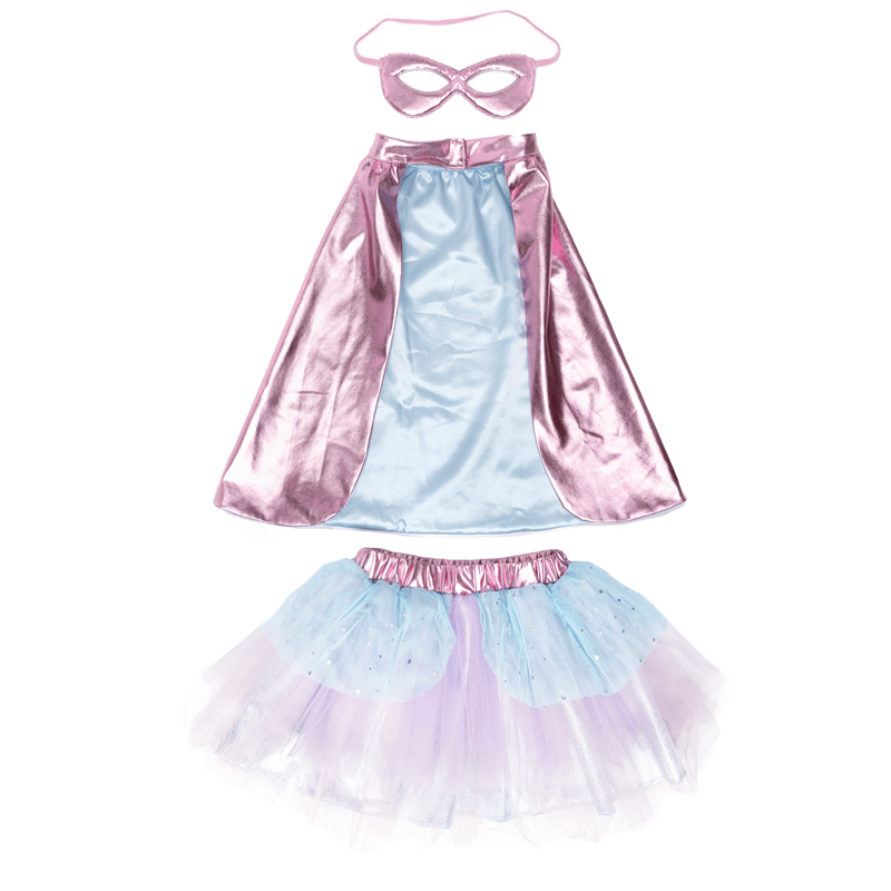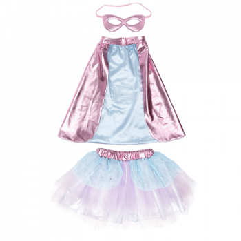 Conjunto compuesto por capa, tutú y antifaz de Súper-Heroína.