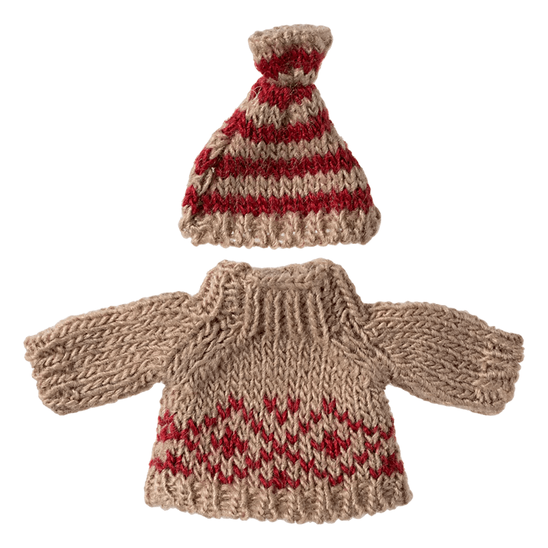 jersey y gorro de lana, para que Ratona mamá de Maileg esté calentita cuando vaya a la montaña contigo.