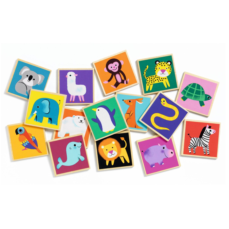 Juego de memoria con animales fabricado en madera, el rey de los primeros juegos educativos.