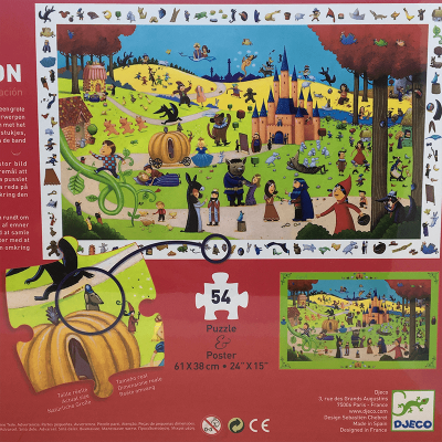Puzzle de 54 piezas de cartón de alta calidad, incluye un póster del mismo tamaño que el puzzle.